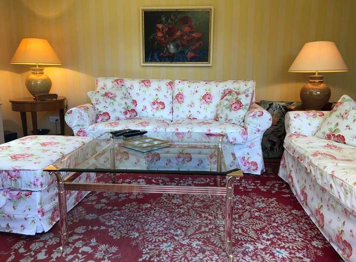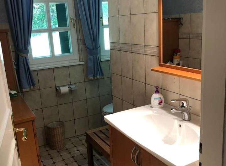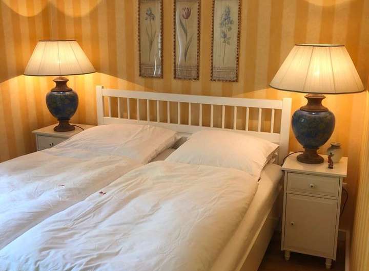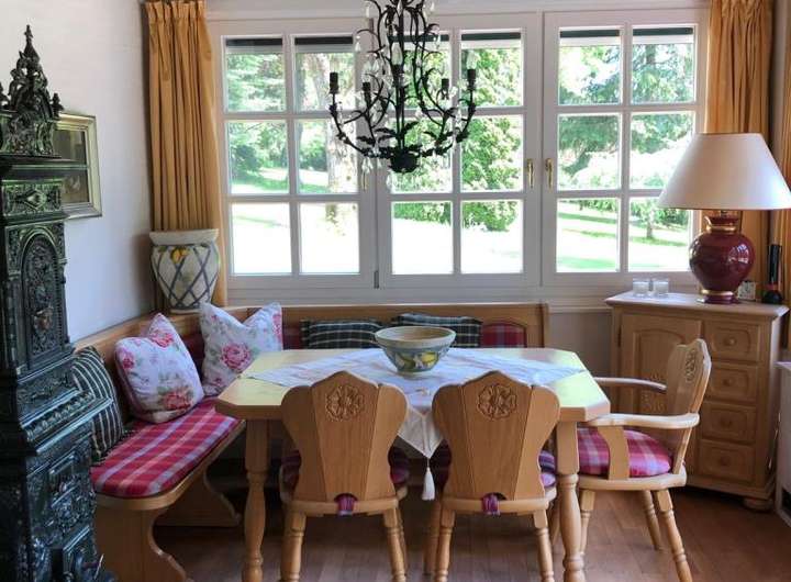 - Ausstattung: Wohnzimmer mit angrenzender Bauernstube, zwei Schlafzimmer, zwei Bäder, voll ausgestattete Küche, Elektroheizung mit Nachtspeicheröfen und offenem Kamin. Die landhaustypische Einrichtung vermittelt Gemütlichkeit und Wohlbefinden.