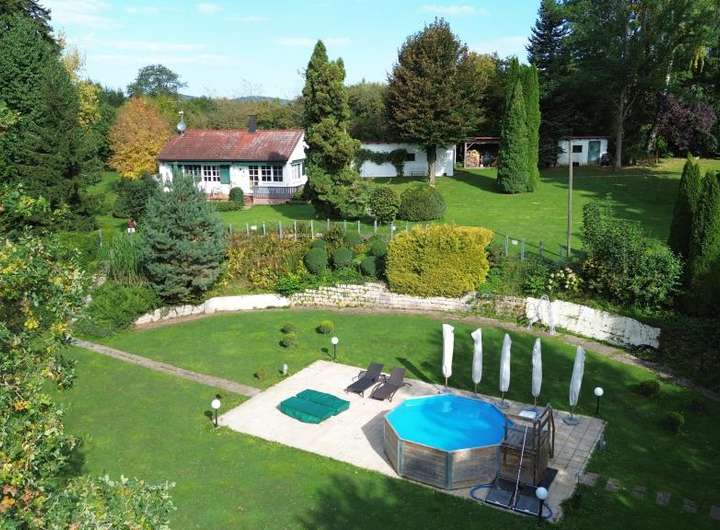 - Ergänzt wird das Anwesen mit Wirtschaftsgebäuden, Garage, Blockhaus und Poolanlage