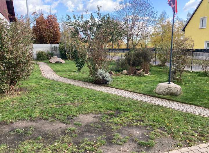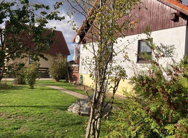 Auf dem 738 m² großen Grundstück befindet sich das Wohnhaus, ein Carport, ein kleiner Schuppen und eine große Halle (9 m x 5 m), welche derzeit als Hobbywerkstatt genutzt wird. Die vorhandene Terrasse, lädt zu zahlreichen Grillabenden oder nur zum Entspannen nach der getanen Arbeit ein. Der Garten bietet ausreichend Platz für den eigenen Gemüseanbau und Spielgeräte für Kinder.