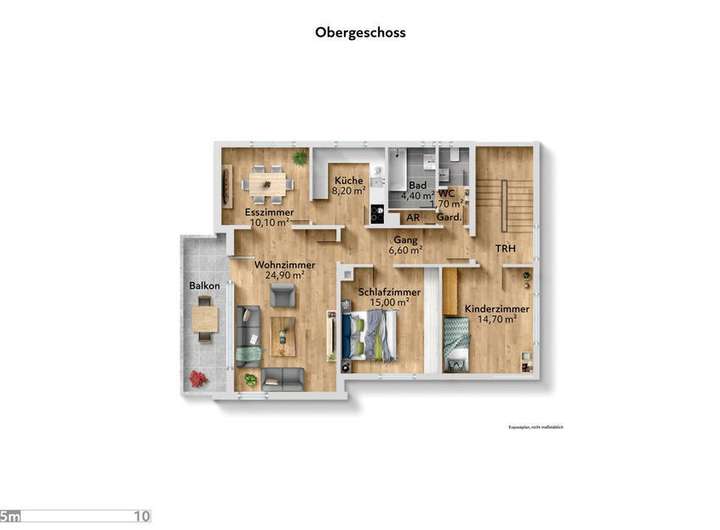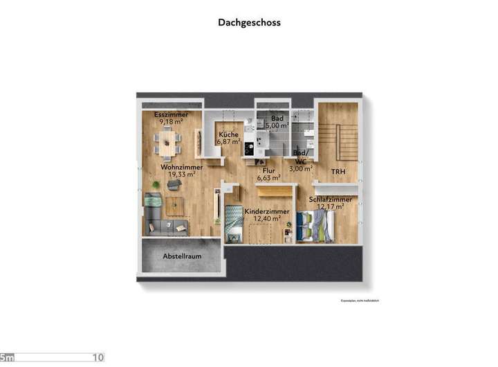 • Erdgeschoss: ca. 87,5 m² plus Terrasse und großzügigem Garten