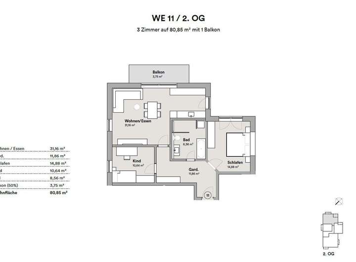 Neubauprojekt in Gilching! Schöne 3-Zimmer Wohnung mit Balkon zu verkaufen - WHG Nr. 11