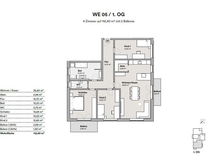 Neubauprojekt in Gilching! Schöne 4-Zimmer Wohnung mit zwei Balkone zu verkaufen - WHG Nr. 5