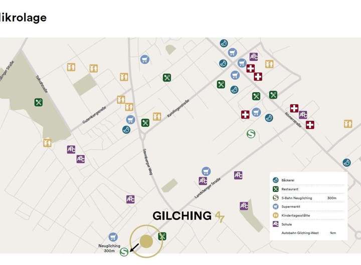 Das lokale Umfeld besticht durch eine hervorragende Infrastruktur mit einer Vielzahl an Einkaufsmöglichkeiten, medizinischen Einrichtungen und Bildungsangeboten, was „GILCHING 47“ zu einem attraktiven Standort für Lebens- und Wohnqualität macht.