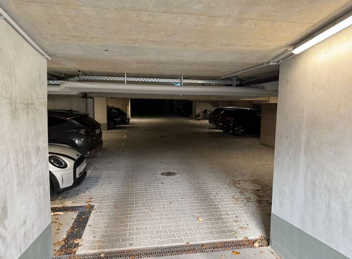 Die **Tiefgaragenstellplätze (2 Stück)** befinden sich **direkt neben dem eigenen Keller- bzw. Hobbyraum**. Sie fahren bequem in die Tiefgarage und gelangen **trocken und sicher auf kürzestem Weg** mit den Einkäufen in Ihr Haus.