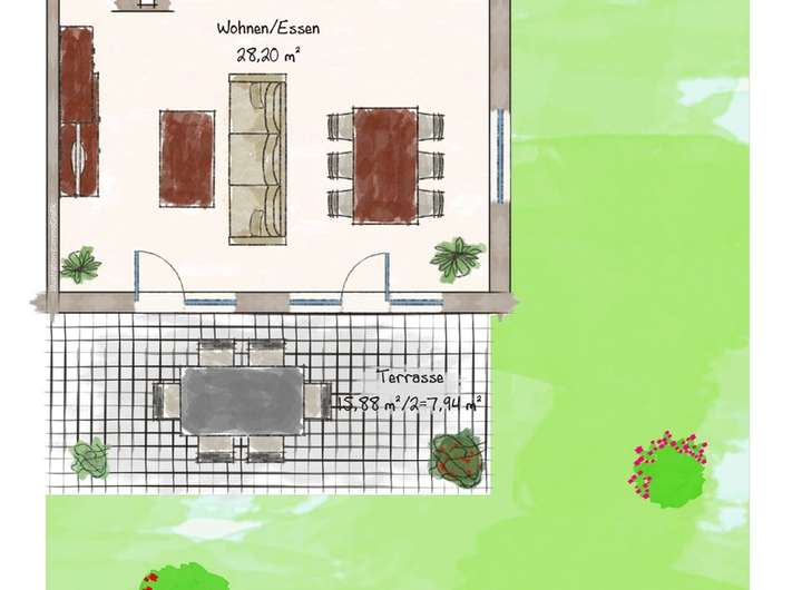 - Im Wohnzimmer besteht ggfs. die Möglichkeit für einen Kaminofen