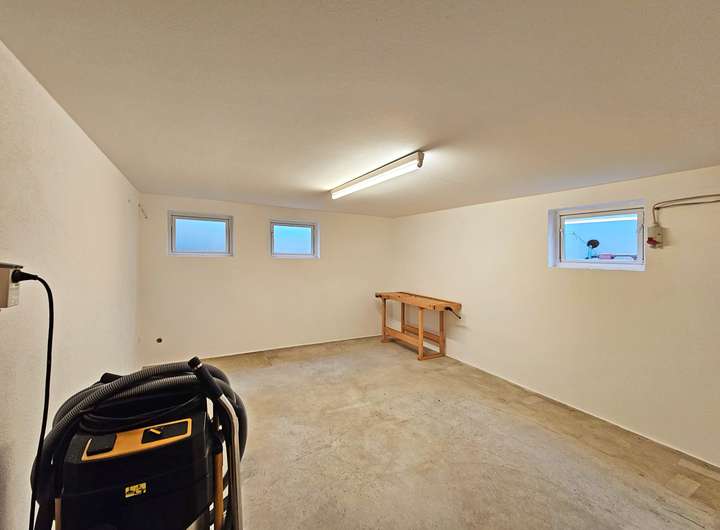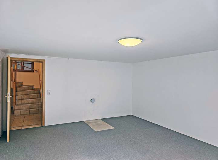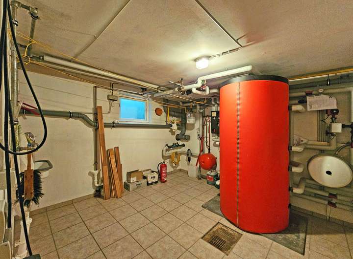 Über das Treppenhaus gelangt man in das Kellergeschoss, in welchem sich neben der Waschküche (mit Haustechnik) 3 ausgebaute Kellerräume - einer davon beheizt und mit großzügigem Tageslichtdoppelfenster und Kaminofenanschluss (nicht in Wohnraum berücksichtigt). Die restlichen Kellerräume verfügen über Lichtschachtfenster.