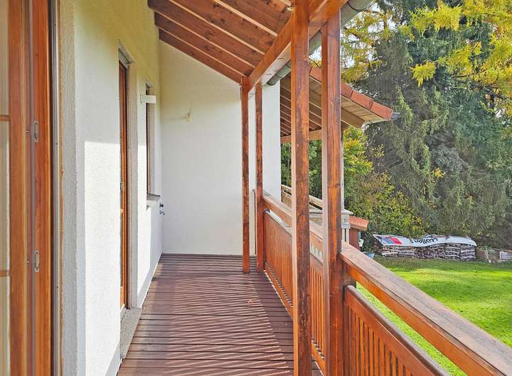 Für einen gemütlichen Tag an der Sonne hat das Gebäude 2 Terrassen: eine aus dem Wohnzimmer kommend im Südbereich und eine halb überdachte auf der Südwestseite mit elektrischer Markise versehen.