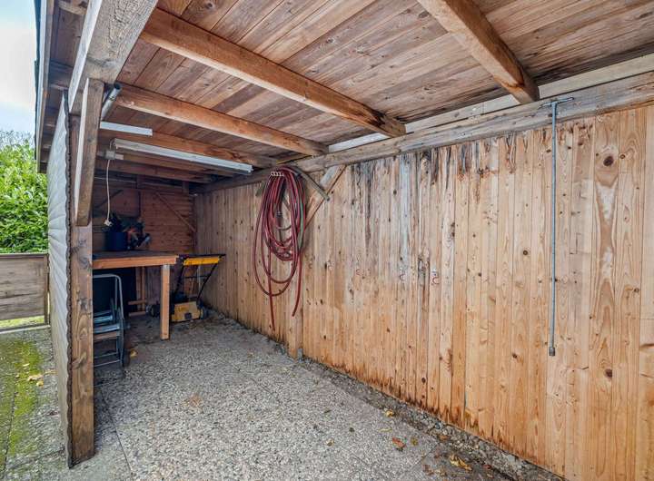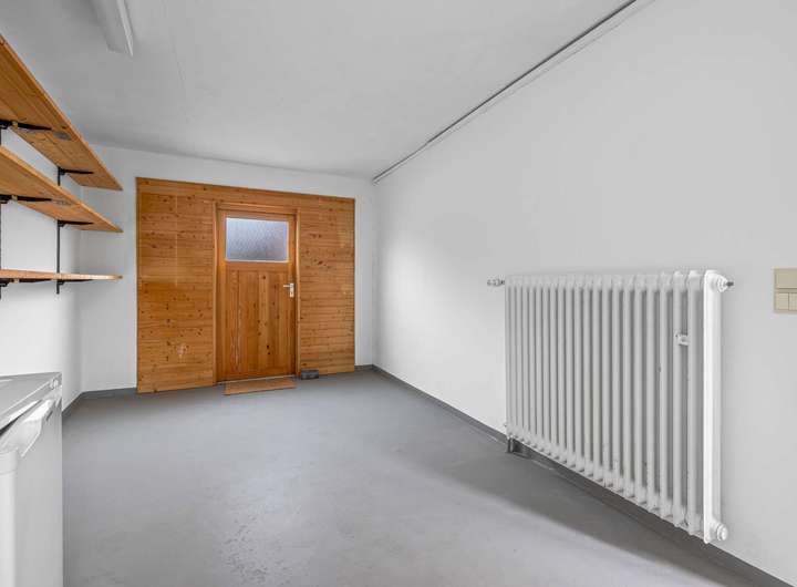 Zur Immobilie gehört außerdem eine Garage sowie weitere Außenstellplätze. Die Garage selbst ist älteren Baujahrs und heute nur eingeschränkt nutzbar – sie wurde umgestaltet und dient aktuell als Hobbyraum.
