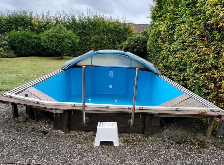 Im Außenbereich überzeugt das Haus mit einem 6 x 4 Meter großen Pool und neu verlegten Pflastersteinen, die dem Garten ein gepflegtes Erscheinungsbild verleihen. Hier lassen sich entspannte Stunden im Freien genießen.