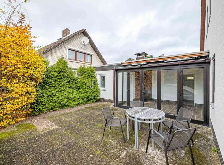 Ein angrenzender Wintergarten sowie ein Hauswirtschaftsraum erweitern die Nutzungsmöglichkeiten des Erdgeschosses.