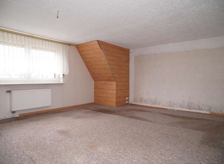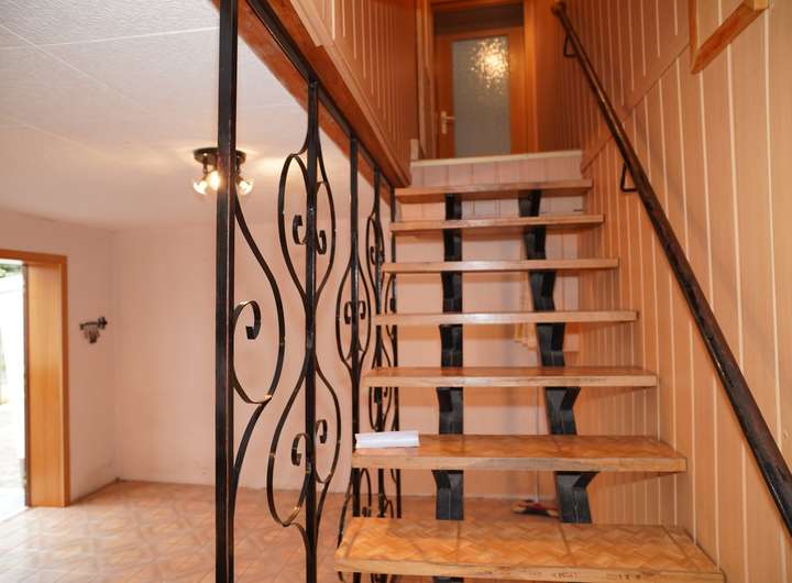 - Innenräume renovierungsbedürftig (Malerarbeiten, Bodenbeläge, Raumaufteilung, Bäder)