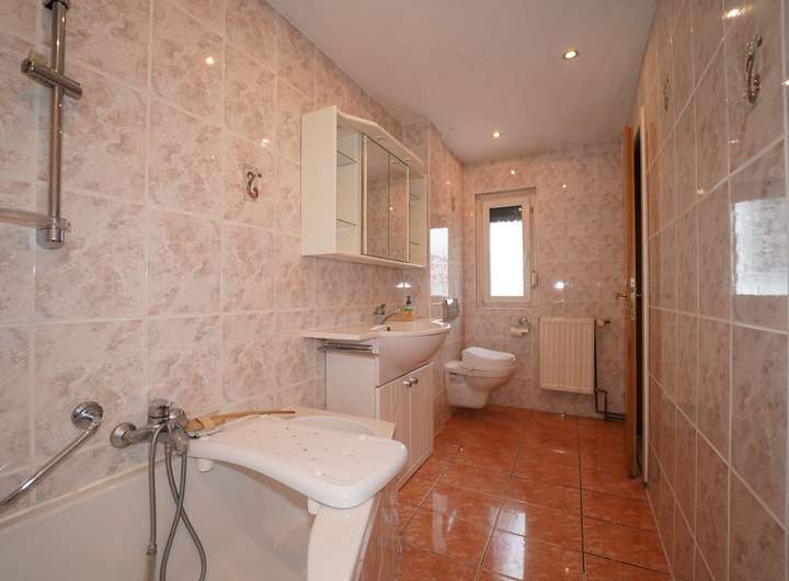 Im Inneren besteht Renovierungsbedarf, insbesondere bei Wand- und Bodenbelägen, der Raumaufteilung und den Bädern. Dadurch bietet sich die Möglichkeit, das Haus nach eigenen Vorstellungen zu modernisieren und individuell zu gestalten.