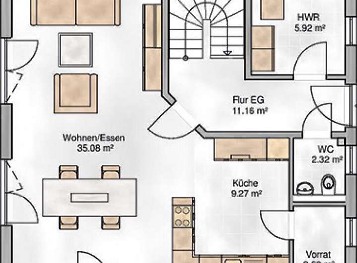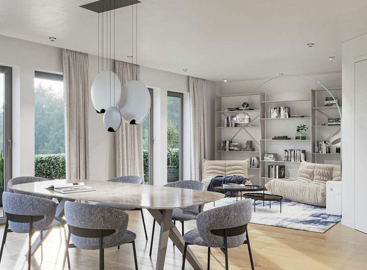 Modernes Wohnambiente trifft auf zeitlose Eleganz und das auf zwei Wohnebenen. Im Erdgeschoss befindet sich ein schönes geräumiges Wohn-Ess-Zimmer mit einem herrlichen Blick in Ihren Garten und eine Küche, die zum gemeinsamen Kochen einlädt. Der Hauswirtschaftsraum, die Speisekammer und das Gäste WC runden das Raumangebot auf dieser Ebene ab. Über die Treppe erreichen Sie die zweite Ebene. Platz für die Kinder, die Eltern, zum Entspannen, zum Arbeiten oder auch für Ihr Hobby. Die Grundrisse sind natürlich noch variabel und können an Ihre Wünsche und Bedürfnisse angepasst werden.