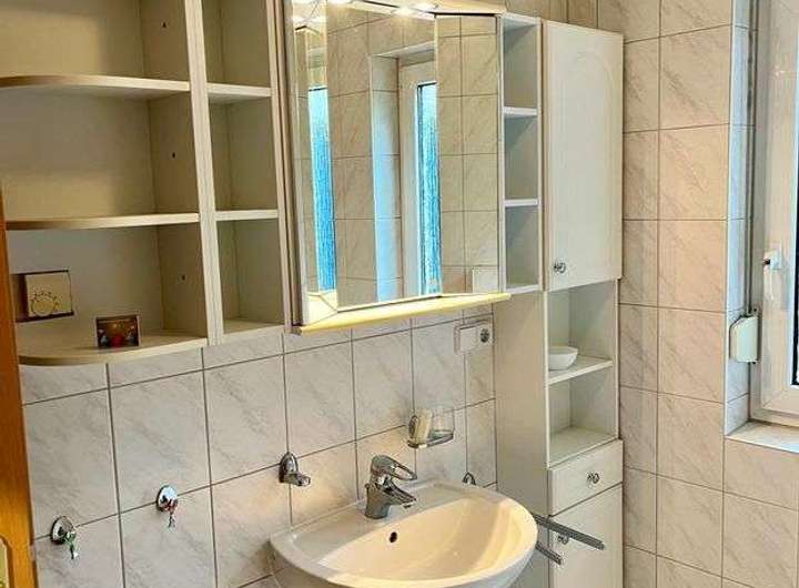 Situated on a 579 m² plot, the house provides approximately 137 m² of living space spread across three floors. On the ground floor, you’ll find a spacious living and dining area with direct access to the sunny west-facing terrace and the beautifully maintained garden – the perfect place to relax and unwind. A fully equipped separate kitchen, a storage room, and a modern shower bathroom complete this level.