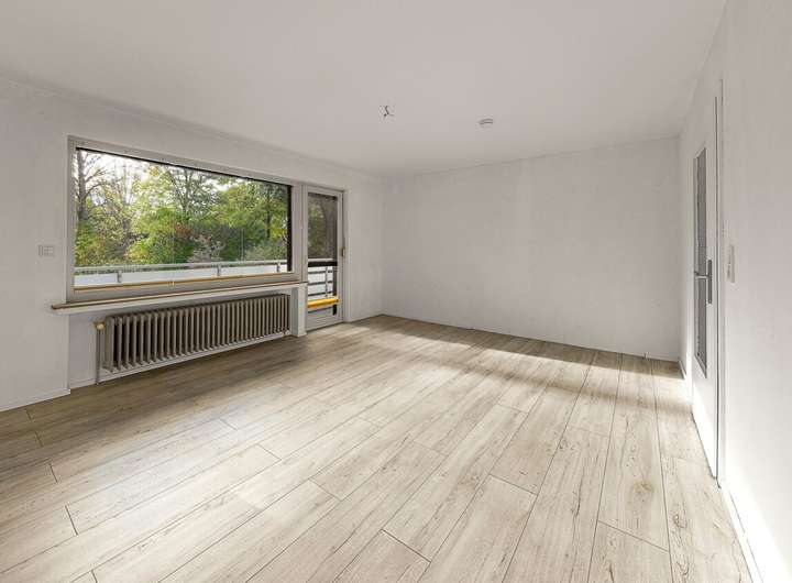 Im Obergeschoss stehen zwei Zimmer sowie ein modernisiertes Duschbad aus dem Jahr 2020 zur Verfügung. Eines der Zimmer bietet Zugang zu einem Balkon mit südlicher Ausrichtung und Blick in den Garten, ideal als Schlafzimmer oder Rückzugsraum. Das Fenster im Wohnzimmer wurde 2024 erneuert, Wohn- und Schlafzimmer verfügen zudem über elektrische Rollläden und hochwertige Plissees.