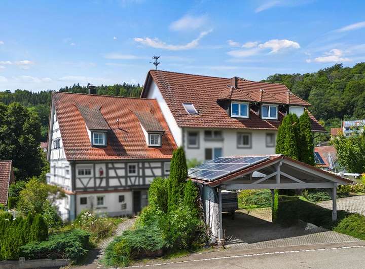 Carport-Stellplatz: Dein Auto parkt vor dem Haus. Es gibt keinen Kellerraum, aber die große Küche bietet genug Raum für Schränke.