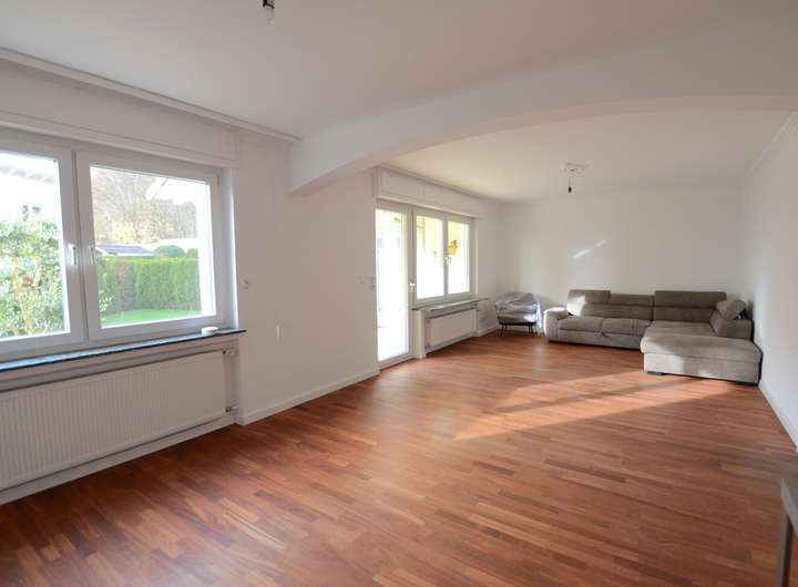 Erbaut 1961 bietet es eine Wohnfläche von ca. 116m² mit Wohn-Essbereich, zwei Schlafzimmern, Küche und Bad. Zusätzlich steht im Obergeschoss noch ein kleines Büro zur Verfügung. Vom Wohn- und Essbereich aus gelangen Sie auf eine überdachte Terrasse mit Westausrichtung und den schön angelegten Garten.