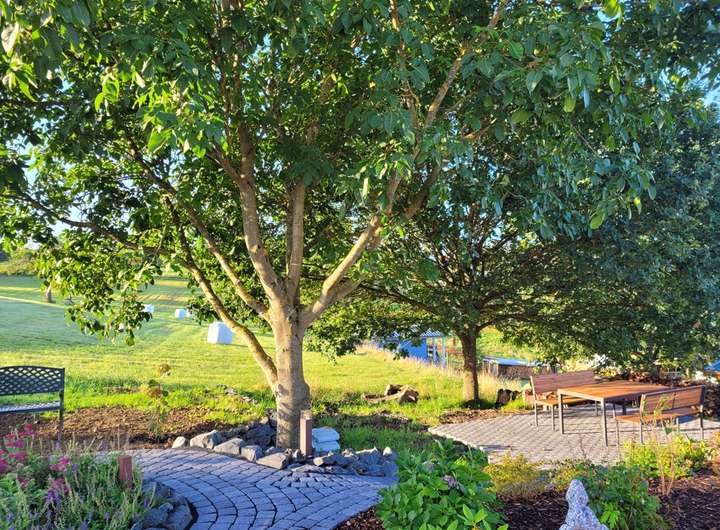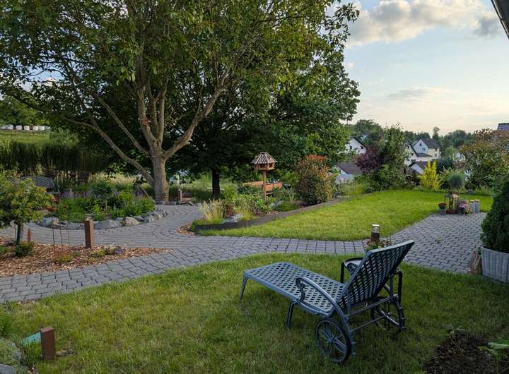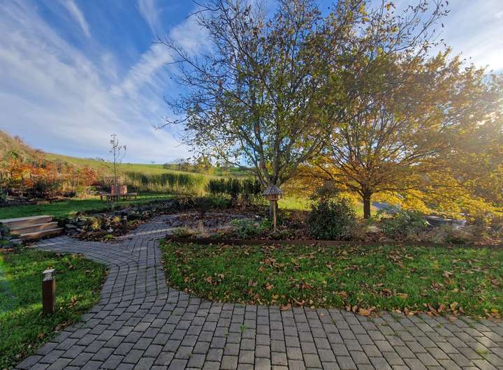 Vom Wohn-Esszimmer, dem Arbeitszimmer und dem Garten können Sie einen wunderbaren Blick ins Grüne genießen, da die Immobilie sich in Orts- und Waldrandlage befindet und das Gartengrundstück an Wiesen und Wälder angrenzt.