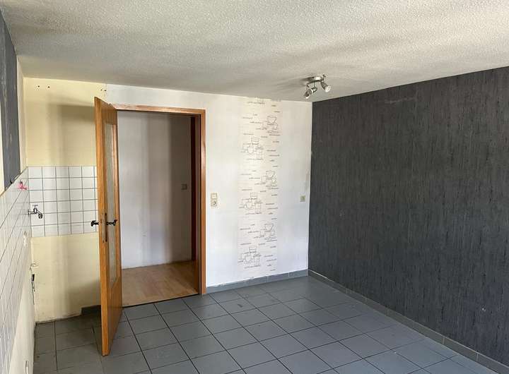 Die Küche bietet Platz für Küchenmöbel und einen Esstisch.