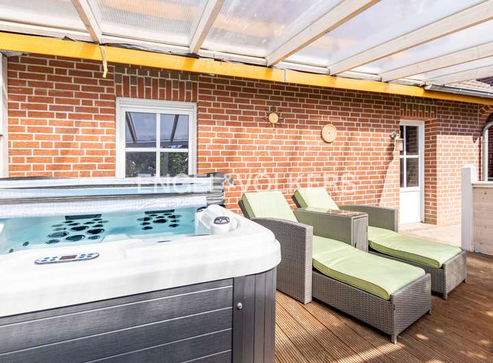 Besonders hervorzuheben sind der lichtdurchflutete Sommergarten und die zusätzlich überdachte Terrasse, die den Übergang in den liebevoll gepflegten Garten perfekt gestalten. Eine Garage bietet praktischen Stauraum und Schutz für Ihr Fahrzeug.