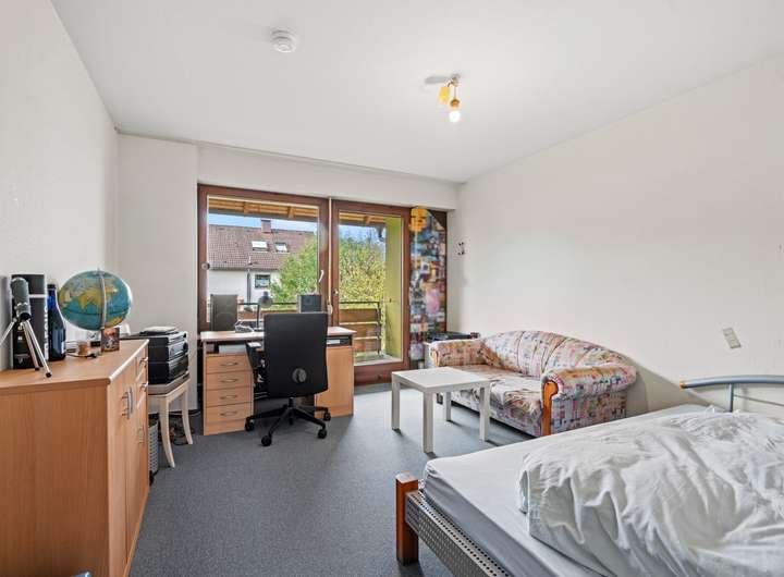 Im Erdgeschoss befinden sich eine separate Küche, ein Gäste-WC sowie der großzügige Wohn- und Essbereich mit Zugang zur Terrasse und zum schönen Garten – ein idealer Ort zum Entspannen oder für gesellige Stunden im Freien. Das Obergeschoss beherbergt drei gut geschnittene Schlafzimmer, von denen zwei Zugang zum Balkon bieten. Das Tageslichtbad ist mit einer Badewanne ausgestattet. Im ausgebauten Dachgeschoss stehen zwei weitere Zimmer sowie ein zusätzliches WC zur Verfügung – perfekt für Gäste, Homeoffice oder Hobbys. Der Keller bietet neben den üblichen Abstellflächen einen ausgebauten Hobbyraum, der vielseitig genutzt werden kann. Eine Öl-Zentralheizung aus dem Jahr 1995 sorgt für Wärme.