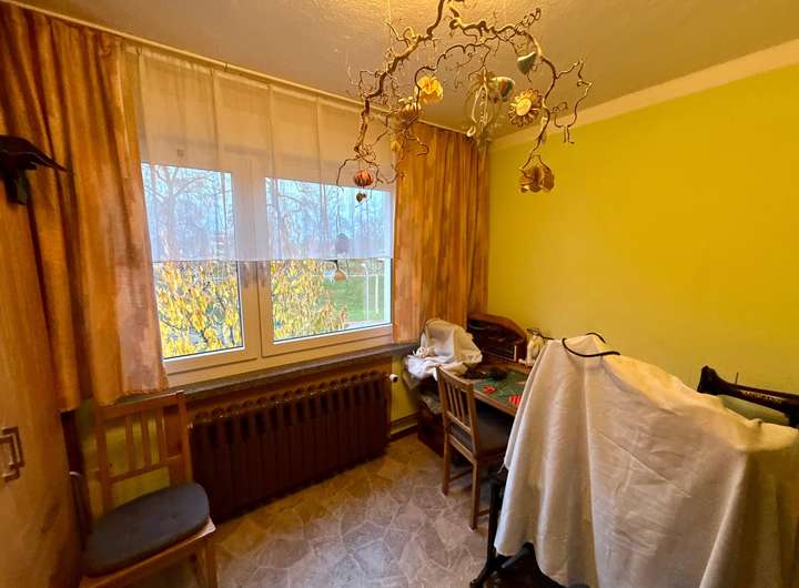 -Elektrik: teils erneuert (Küche, Bad unten, Keller) – sonst DDR-Standard