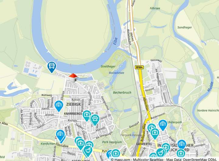 Trotz der idyllischen Umgebung ist die Infrastruktur hervorragend: Einkaufsmöglichkeiten, Schulen, Kindergärten und ärztliche Versorgung befinden sich in kurzer Entfernung. Die Innenstadt von Dessau ist in wenigen Minuten erreichbar, ebenso wie die Anbindung an die Bundesstraßen B184 und B185, die eine gute Verbindung in Richtung A9 sowie zu den umliegenden Städten gewährleisten.