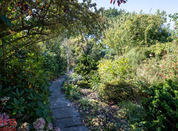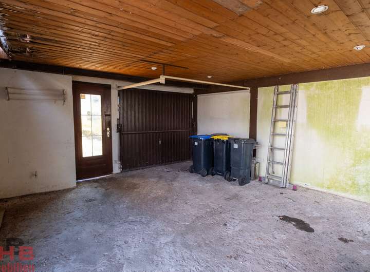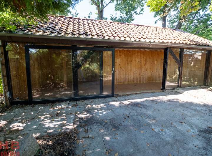 Reichlich Stau- und Nebenfläche wird durch eine große Garage mit angrenzenden Räumen sowie ein geräumiges Gartenhaus geboten.