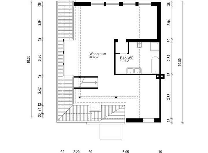 üppiger Dachboden mit 1,80 Meter Deckenhöhe
