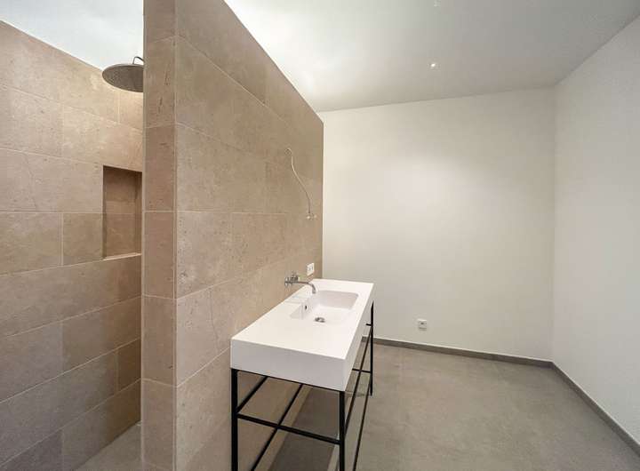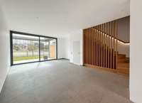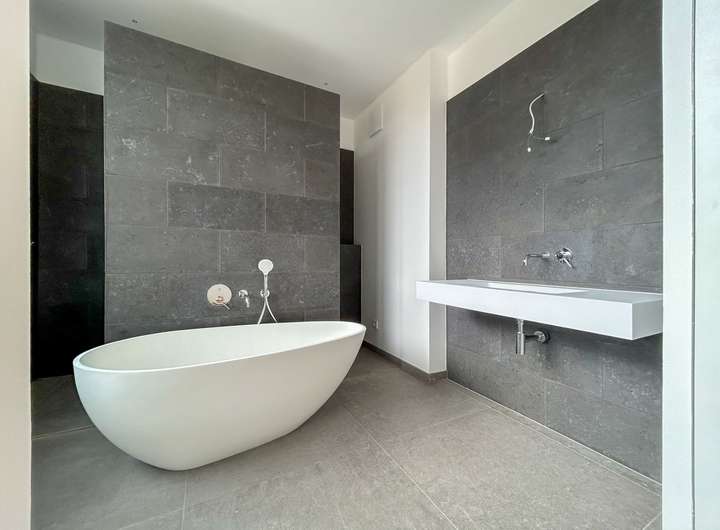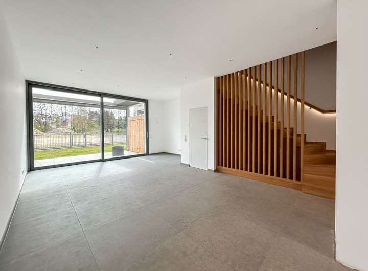 Auch bei der Ausstattung wurde größter Wert auf Qualität gelegt. Eichenparkett, eine elegante Holztreppe, Naturstein- und Feinsteinzeugelemente setzen stilvolle Akzente. Für Komfort und Behaglichkeit sorgen Fußbodenheizung, Deckenheizung- und Kühlung sowie modern integrierte Beleuchtungskonzepte. Außenjalousien und Einbruchschutzfunktionen ergänzen das Sicherheitsgefühl, während der Glasfaseranschluss ideale Voraussetzungen für Homeoffice schafft.