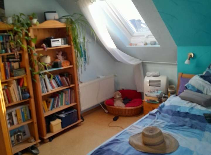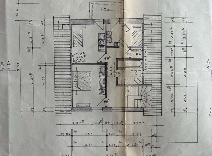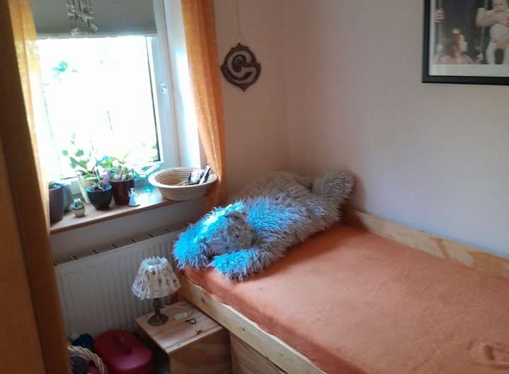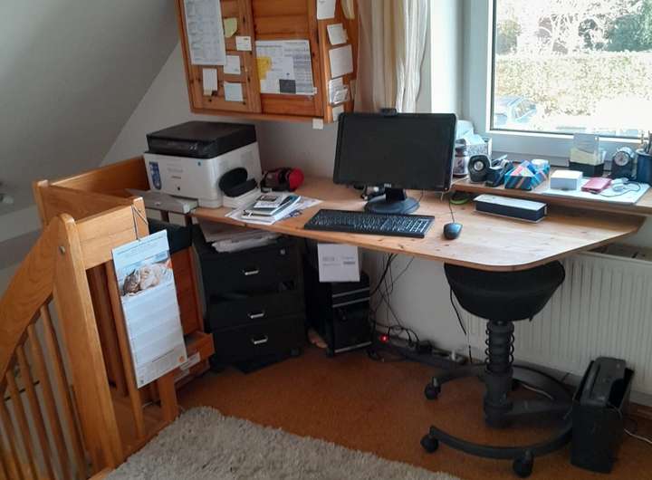 Im Dachgeschoß befindet sich das gemütliche Schlafzimmer mit Balkon, ein Kinderzimmer, das aktuell als begehbarer Kleiderschrank umgebaut wurde, sowie ein weiteres Gästezimmer. Der Flur bietet genügend Platz, um hier ggf. Büroarbeiten durchzuführen. Das Wannenbad mit der großen Badewanne lädt zum Entspannen ein.