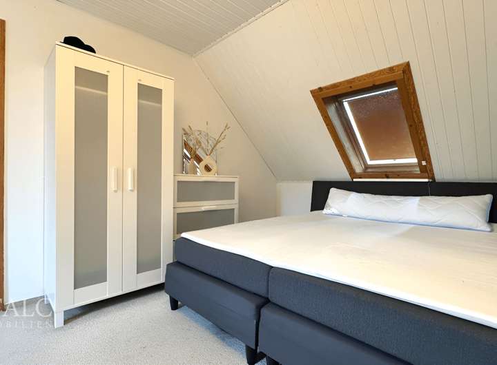 Das Dachgeschoss ist als Kaltdach ausgeführt, die oberste Geschossdecke wurde bereits gedämmt. Auch der wetterseitige Giebel erhielt eine Dämmung, sodass ein guter energetischer Grundzustand gegeben ist. Die Fenster stammen aus dem Jahr 2005, im gesamten Erdgeschoss wurden Rollläden installiert. Ein Teilkeller sorgt für zusätzliche Abstellmöglichkeiten, während der Dachboden weiteren Stauraum bereithält.