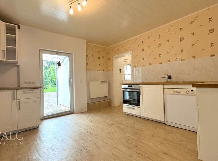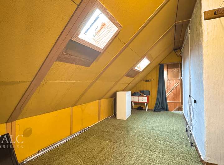 Das Innere des Hauses überzeugt durch eine einladende Raumaufteilung. Im Erdgeschoss befindet sich eine große, helle Landhausküche mit direktem Zugang zum Hof, die zum Mittelpunkt des Familienlebens werden kann. Zwei Tageslichtbäder mit Badewanne stehen ebenfalls im Erdgeschoss zur Verfügung. Eine offene Wendeltreppe führt ins Obergeschoss, wo weitere Zimmer vielseitige Gestaltungsmöglichkeiten bieten. Ein Zimmer im Erdgeschoss ist sanierungsbedürftig und verfügt über einen charmanten Kachelofen, der für eine gemütliche Atmosphäre sorgt.