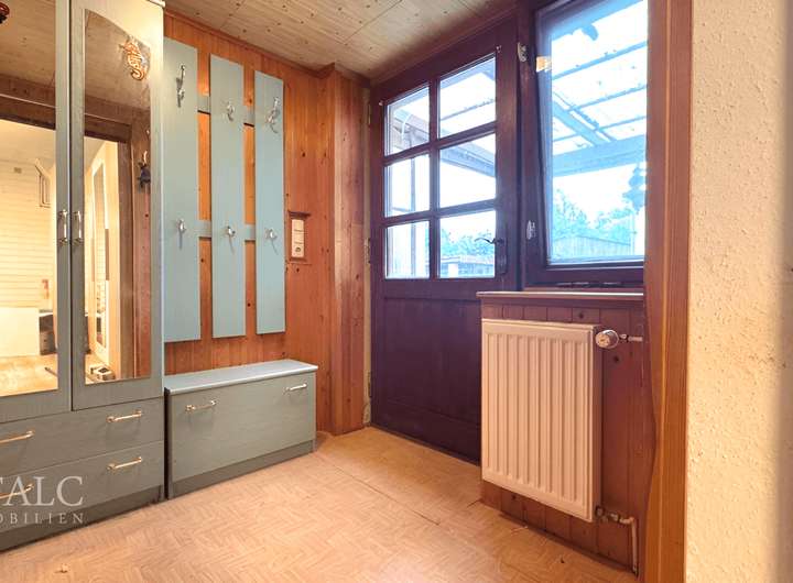 * zwei hintere Eingänge (einer mit Windfang), zusätzlicher Windfang am Hauseingang