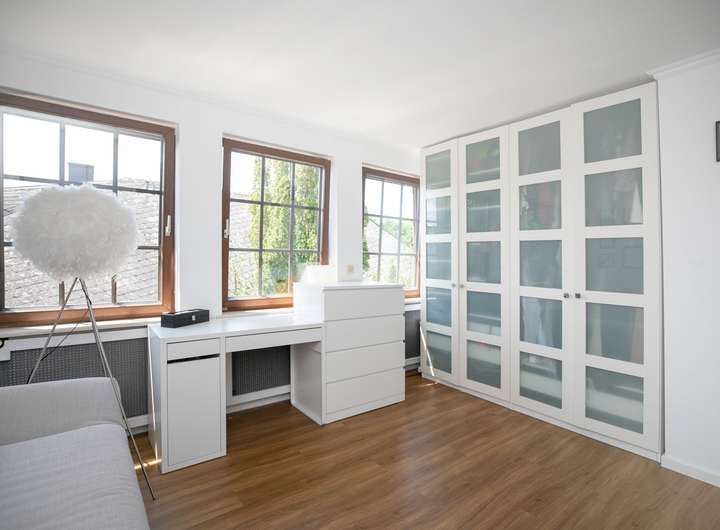 Ein weiteres Zimmer im Erdgeschoss eignet sich als Arbeits-, Gäste- oder Jugendzimmer. Das zusätzliche Bad auf dieser Ebene sorgt für Komfort und Flexibilität im Alltag.