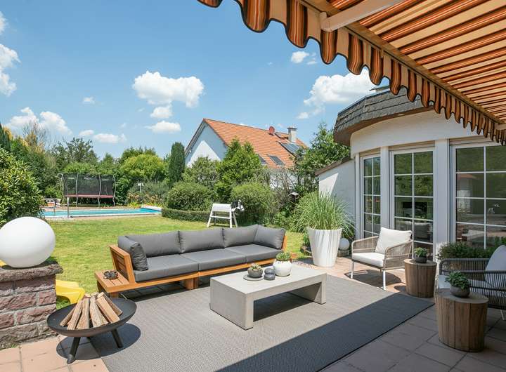 Dieses charmante Einfamilienhaus im klassischen Landhausstil überzeugt durch seine großzügige Aufteilung, ein weitläufiges Grundstück und zahlreiche Annehmlichkeiten wie Außenpool, Poolhaus und sonnige Terrassenflächen.