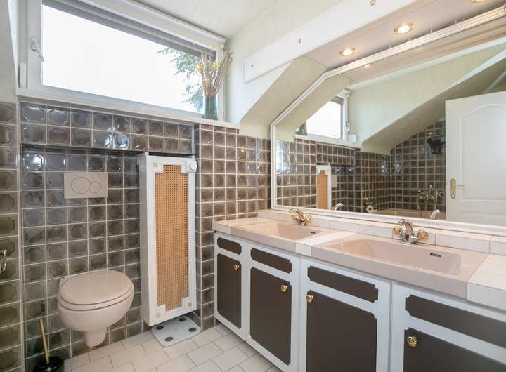 Im Obergeschoss stehen drei Schlafzimmer zur Verfügung – ideal für Eltern, Kinder oder auch ein separates Arbeits- oder Hobbyzimmer. Das großzügige Badezimmer ist funktional, bietet jedoch Modernisierungspotenzial, um es an zeitgemäße Ansprüche anzupassen.