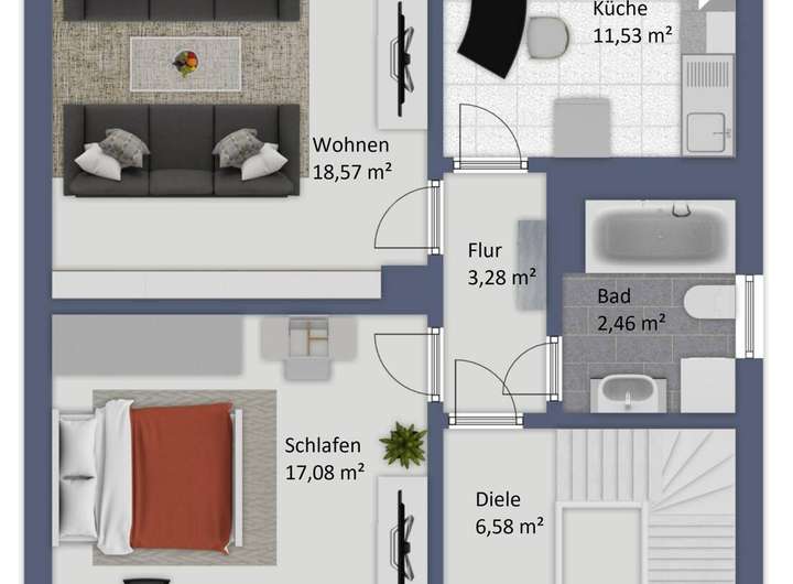 - Insgesamt 119 m² Wohnfläche, 29,19 m² wohnlich ausgebaute Nutzfläche im Dachgeschoss und 57 m² Nutzfläche im Keller