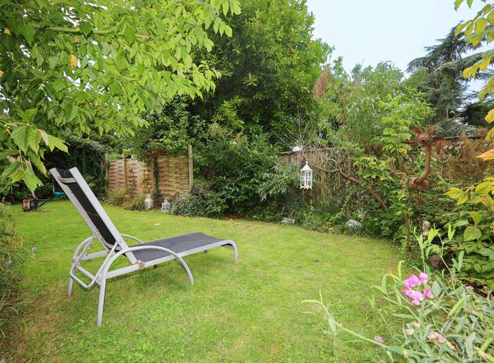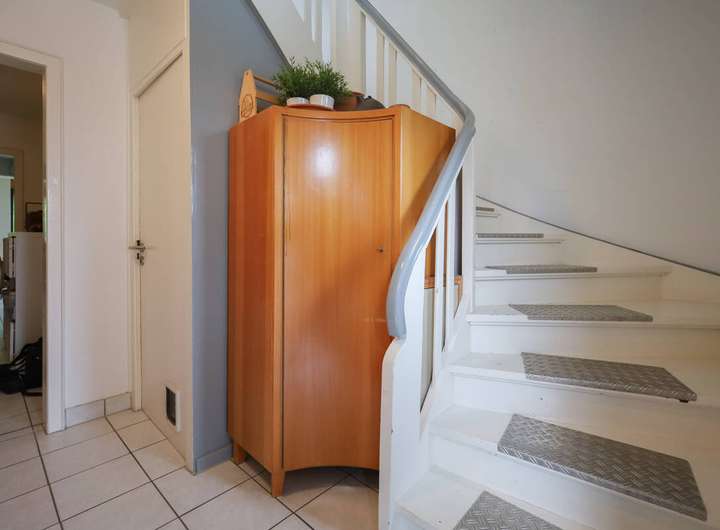 Das Erdgeschoss umfasst ursprünglich zwei Zimmer, ein Wannenbad mit Fenster sowie eine Küche. Die Wand zwischen Wohn- und Schlafbereich wurde geöffnet, wodurch aktuell ein großzügiger Wohn- und Schlafraum entstanden ist. Der Garten ist von hier aus zugänglich.