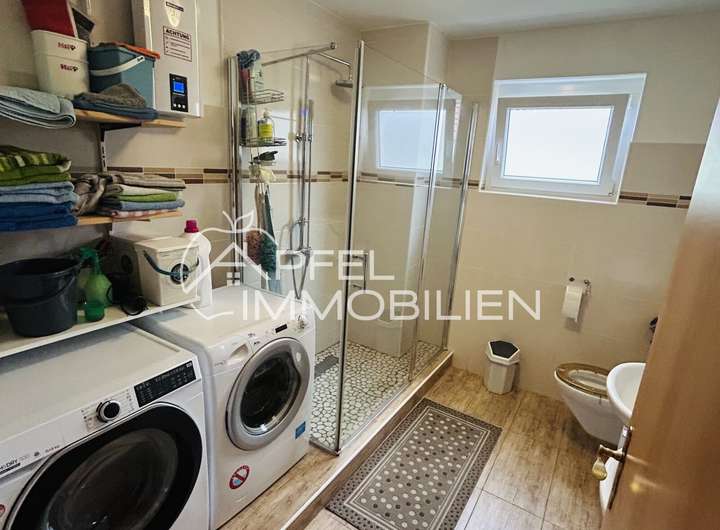 Das Haus besticht durch seine gute Ausstattung und durchdachte Bauweise. Die Fußböden aus Fliesen und Laminat sind nicht nur ästhetisch ansprechend, sondern auch pflegeleicht und langlebig. Fliesen sind ideal für Feuchträume, da sie wasserabweisend sind, während Laminat in Wohnräumen eine warme und einladende Atmosphäre schafft. Die Etagenheizung mit Elektroheizung durch die Photovoltaikanlage sorgt für eine effiziente und kostengünstige Wärmeverteilung, perfekt für ein gemütliches Zuhause. Der Niedrigenergie-Standard des Hauses hilft Ihnen zudem, Energiekosten zu sparen und die Umwelt zu schonen.