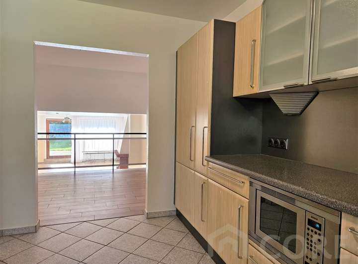 Die zweite Ebene ist galerieartig gestaltet. Vom Essbereich aus genießen Sie den Blick ins Wohnzimmer und in den Garten. Von hier gelangen Sie außerdem direkt in die Küche. Ein Gäste-WC mit Dusche rundet diese Ebene ab.