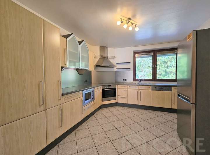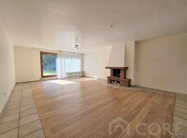Auf der ersten Ebene steht Ihnen ein großzügiges Wohnzimmer mit offenem Kamin und Zugang zur großen Terrasse sowie zum Gartenbereich zur Verfügung. Der Garten wird von den drei Parteien des Hauses gemeinschaftlich genutzt.