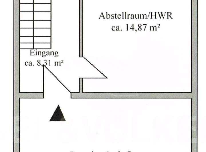 Über den gemeinschaftlichen Eingangsbereich gelangen Sie ins Haus. Neben dem Eingang befindet sich ein großer Hauswirtschaftsraum mit Waschmaschinenanschluss und reichlich Stauraum.