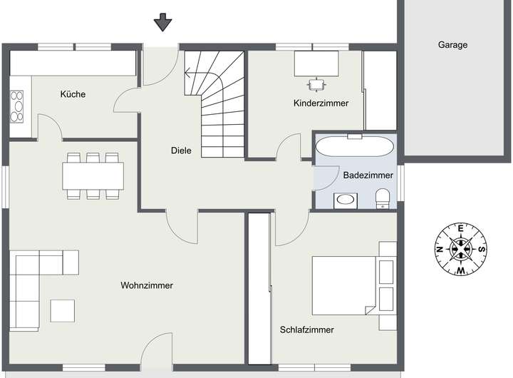 Die durchdachte Raumaufteilung erlaubt eine flexible und individuelle Gestaltung. Ob kreative Renovierung oder umfassende Modernisierung - hier können Sie Ihre Vorstellungen realisieren. Beide Badezimmer sollten zeitgemäß erneuert werden, um modernen Komfort zu gewährleisten.