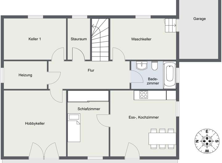 Eine unterkellerte Doppelgarage bietet Platz für zwei Fahrzeuge und zusätzlichen Stauraum - ideal für Hobby, Lagerung oder Werkstatt.