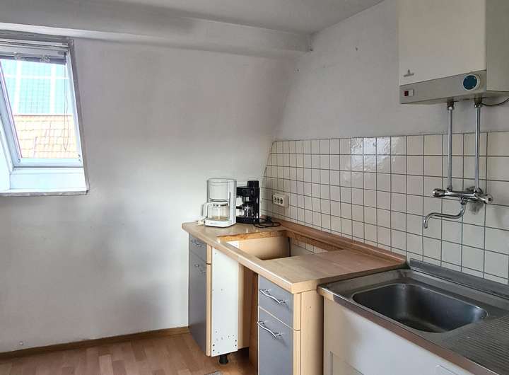Das Dachgeschoss umfasst zwei weitere große Räume, eine Essdiele, eine Küche sowie ein Tageslichtbad. Über eine Einschubtreppe im Flur erreichen Sie den Dachspitz, der zusätzlichen Stauraum bietet.