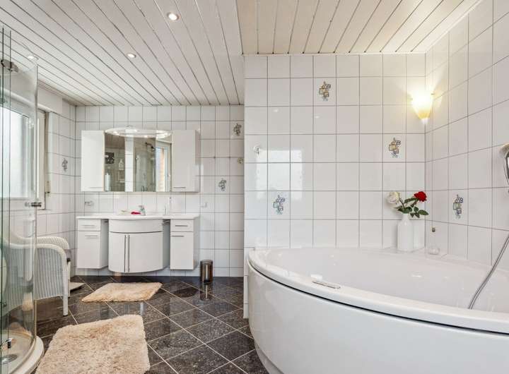 Das Gebäude ist derzeit in vier Wohneinheiten aufgeteilt. Im Erdgeschoss wurden zwei ursprünglich separate Wohnungen zu einer großzügigen Einheit zusammengelegt. Hier befinden sich zwei helle Tageslichtbadezimmer, von denen eines mit einer Dusche und das andere mit einem Whirlpool sowie einer weiteren Dusche ausgestattet ist. Außerdem verfügt die Wohnung über ein geräumiges Wohnzimmer, von hier aus haben Sie direkten Zugang zum Garten und zu einer schönen Terrasse, die zum Entspannen im Freien einlädt. Ein Schlafzimmer sowie ein Kinderzimmer stehen Ihnen hier ebenfalls zur Verfügung.