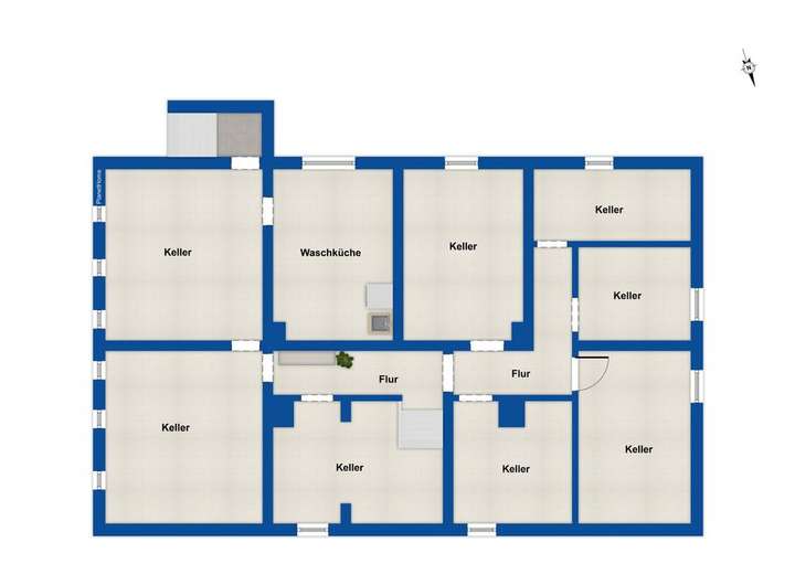 Das Gebäude ist vollständig unterkellert und bietet dadurch reichlich Stauraum. Zum Haus gehören eine Einzelgarage sowie fünf weitere Reihengaragen im hinteren Bereich des Grundstücks. Darüber hinaus stehen vier zusätzliche Außenstellplätze zur Verfügung.