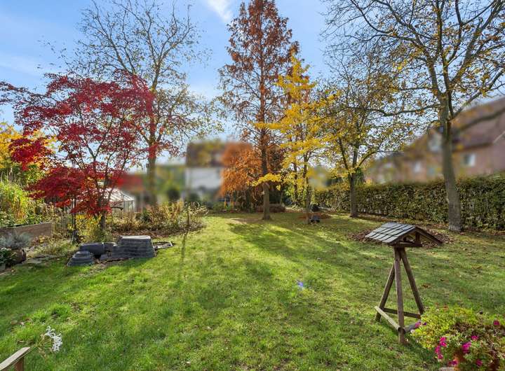 Im großzügigen Garten stehen zudem zwei praktische Schuppen, die zusätzlichen Stauraum bieten. Drei Walnussbäume, zwei Ginko, eine Sumpfzypresse, ein Zwetschenbaum, eine Esskastanie und ein Rot Ahorn sorgen für eine angenehme Atmosphäre und einen besonderen Charme.