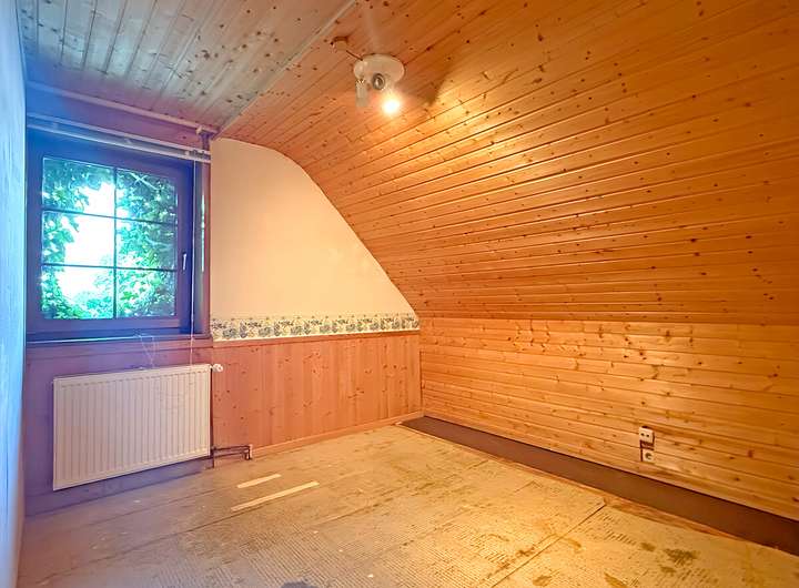 Die Küche besticht durch ihren rustikalen Charme und bietet ausreichend Platz für kulinarische Entfaltung. Die fünf Zimmer des Hauses verteilen sich geschickt und bieten flexible Nutzungsmöglichkeiten, sei es als Schlafzimmer, Büro oder Hobbyraum.